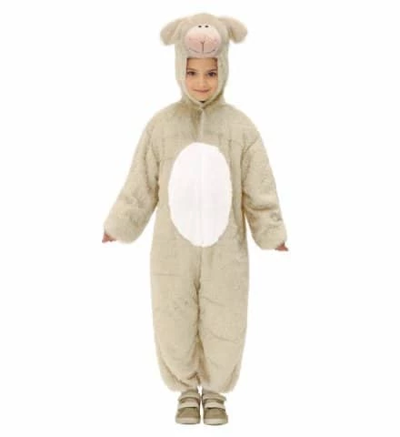 Une combinaison intégrale d’un jeune agneau ou jeune mouton en peluche pour enfants de 3 à 8 ans sous forme de kigurumi pyjama, ce déguisement enfant de la marque Widmann aurac beaucoup de succès, les enfants adorent les déguisements animaux. Une bonne idée pour une soirée sur le thème des animaux ou à l’occasion d’un anniversaire ou un carnaval.