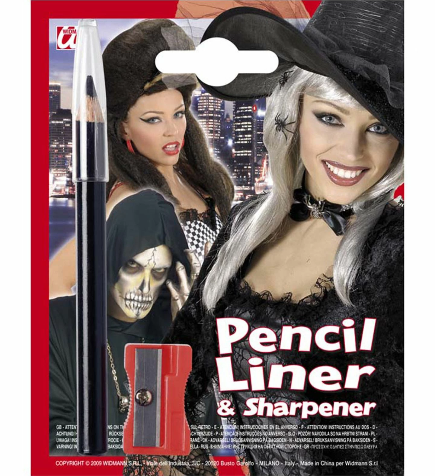 Un crayon noire liner pour affiner par exemple votre maquillage de sorcière en embellissant le contour de vos yeux (voir photo). Un pack idéal de chez Widmann pour Halloween ou lors d’une soirée déguisée sur le thème de l’horreur. Découvrez l’ensemble de nos articles de maquillages.