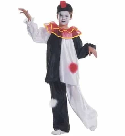 Un déguisement enfant du personnage de Pierrot, une tenue noire et blanche, idéale pour défiler dans un carnaval ou dans une soirée déguisée sur différents thèmes. Ce costume de la marque Widmann comprend une chemise, un col, un pantalon et un chapeau, il est proposé en différentes tailles enfants. Découvrez nos articles sur le carnaval de Venise.