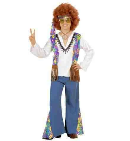 GARÇON HIPPIE WOODSTOCK (Tenue + Chapeau + Cheveux) Tailles Enfants