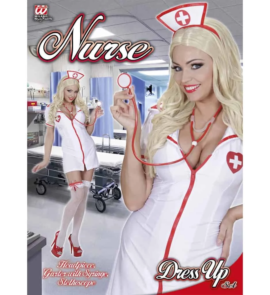 Un kit de déguisement de l’infirmière sexy comprenant, un stéthoscope, une coiffe, une jarretière avec un stylo. Ce déguisement pour adulte de la marque Widmann est pratique et économique pour vos prochaines soirées déguisées.