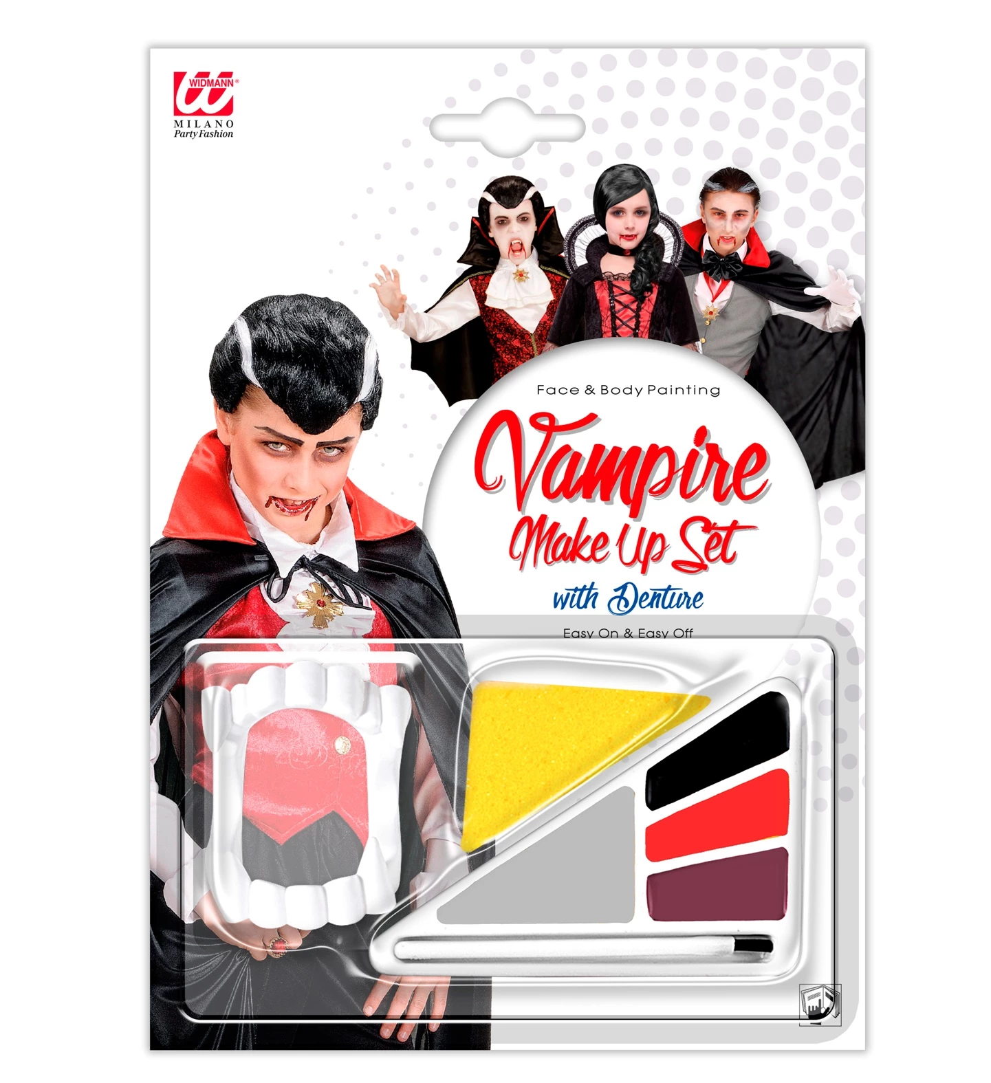 Superbe kit de maquillage de la marque Widmann avec tous les accessoires pour incarner un vampire et impressionner les invités lors d’une soirée à thème (voir photo). Cet ensemble de maquillage pour vampire va vous permettre d’avoir un visage adapté à l’événement. Ce kit est idéal pour rendre plus crédible votre personnage lors des soirées déguisées ou pour Halloween.
