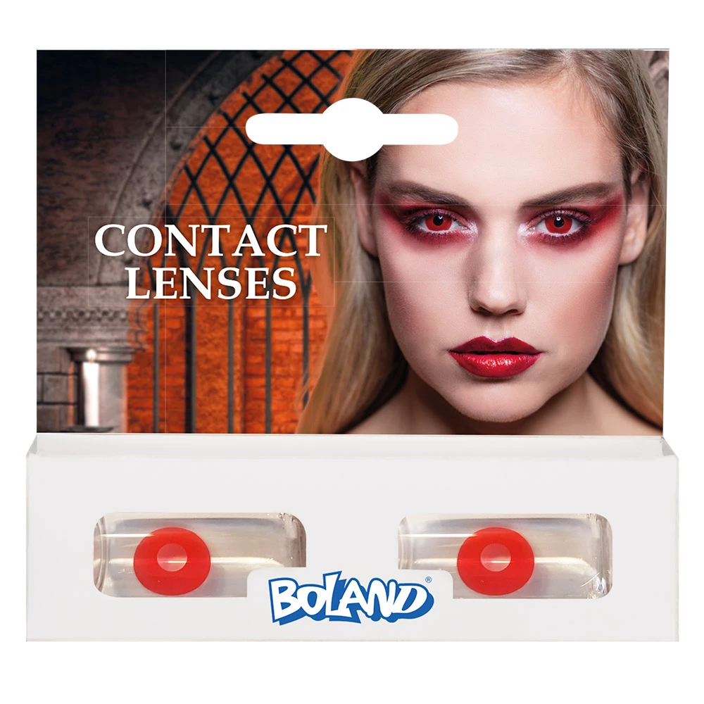 En voila une superbe idée pour surprendre tout le monde lors de votre prochaine soirée à thème, une paire de lentilles aux yeux rouges sang pour incarner un personnage mystrieux ou un vampire. C’est l’accessoire tendance idéal pour changer votre regard pendant la fête d’ Halloween ou une soirée déguisée sur le thème de l’horreur. Découvrez nos effets spéciaux. Ces lentilles de la marque Boland sont valables 3 mois après ouverture, elles se conservent dans un produit d’entretien classique pour lentilles que vous trouverez en pharmacie. Présentation dans un petit packaging prévu pour les magasins (voir photo).