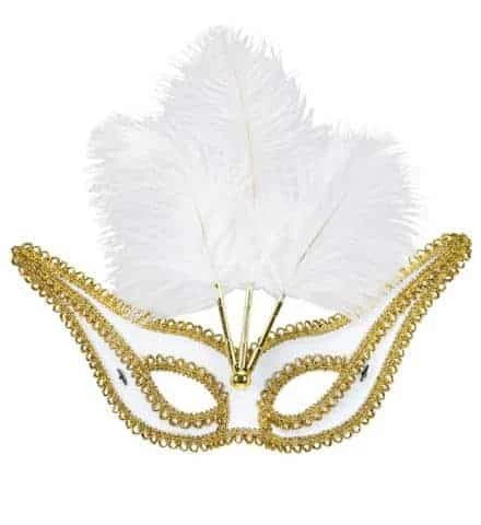 Un magnifique masque blanc à plumes assorties et bordures dorées(voir photo). Ce loup vénitien de la marque Widmann est original avec un coté très baroque. C’est l’accessoire idéal pour une soirée déguisée ou à l’occasion d’un carnaval. Ce masque a plumes est vendu par lot de 6 pièces minimum, le prix indiqué est le prix unitaire. Découvrez tous nos articles sur le carnaval de Venise.