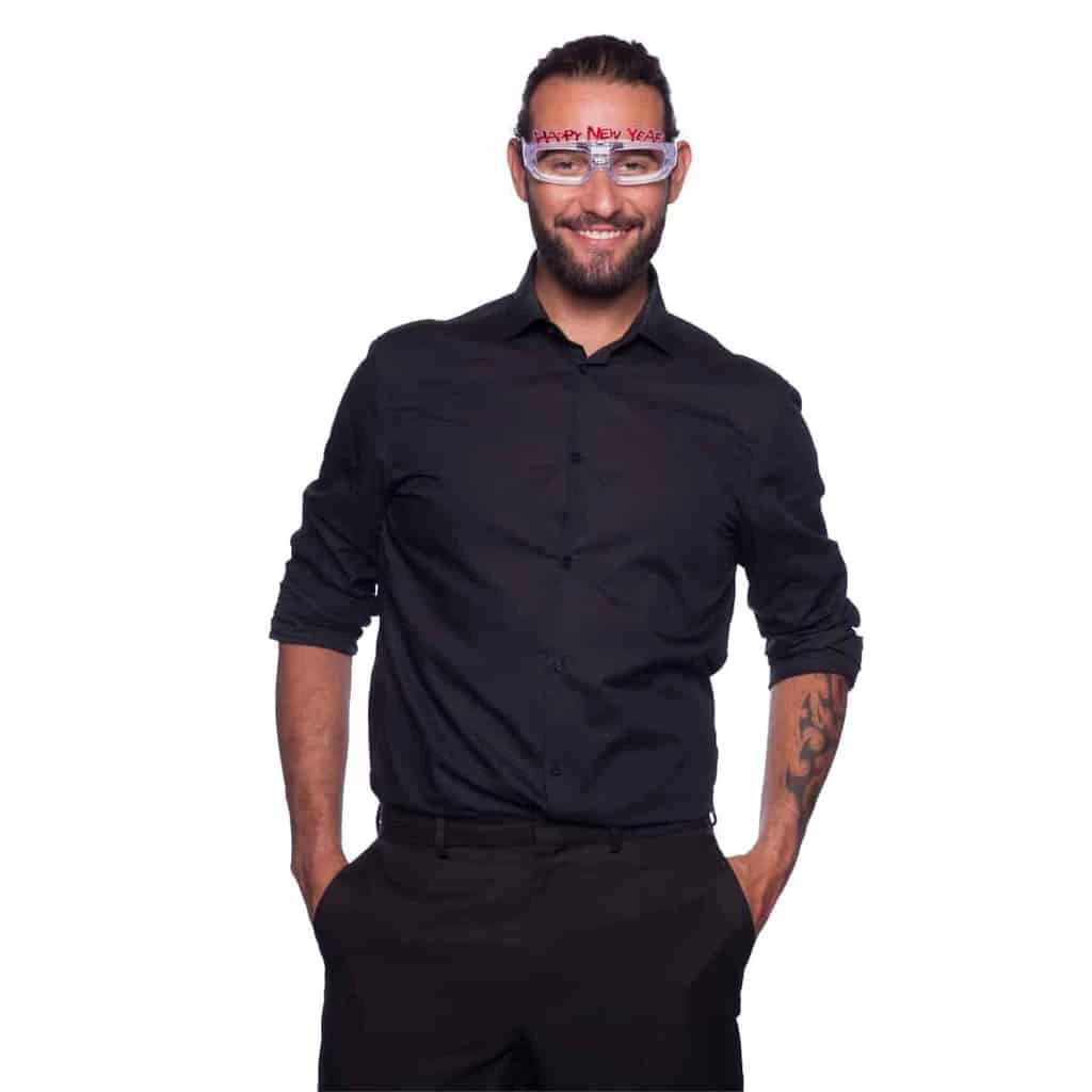 Une superbe paire de lunettes design et lumineuses pour le nouvel an avec l’inscription « Happy new year » pour célébrer et souhaiter la bonne année de manière visuelle. Ces lunettes drôles seront parfaites pour accompagner un déguisement le soir du réveillon.