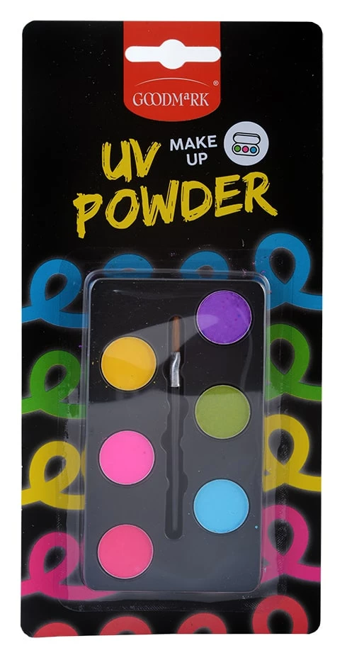 Maquillez vous comme vous avez envie avec ce kit complet de maquillage avec des couleurs UV à l’eau (voir photo). Un maquillage simple et fashion pour transformer votre visage en ce que vous voudrez lors d’un anniversaire, un carnaval, une soirée déguisée.