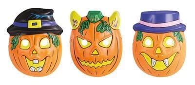 24 masques humoristiques en forme de citrouille, ces masques sont en pvc et sont proposés en 3 modèles différents (voir photo), le masque enfant, un accessoire idéal pour la fête d’Halloween, un goûter d’anniversaire le 31 Octobre ou pour un carnaval. Ce lot est vendu par 24 pièces minimum (assortiment 3 modèles), le prix indiqué est le prix unitaire.
