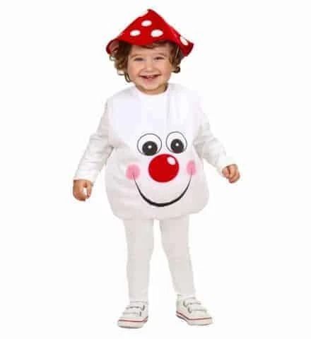 Très joli déguisement pour enfant comprenant le costume et la coiffe, une combinaison représentant un champignon avec un joli sourire (voir photo). Les enfants vont pouvoir incarner le thème des fruits et légumes avec une touche d’humour et intriguer les copains lors d’un anniversaire ou une soirée déguisée avec les parents. Ce déguisement fruit et légumes de chez Widmann est vendu par 6 pièces minimum, le prix indiqué est le prix unitaire. (Taille unique 1-3 ans).