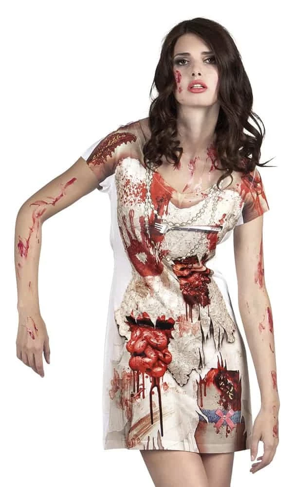 ROBE ZOMBIE SANGLANTE (Robe Imprimée Avec Sang) Tailles S Et M