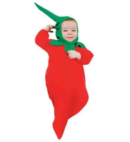 Un superbe déguisement pour bébé de piment sous forme de sac a dodo (voir photo), tout le monde va craquer pour cette petite panoplie enfant de 0 à 9 mois, elle sera parfaite pour célébrer la naissance lors d’un baby shower ou lors d’une soirée déguisée. Une jolie combinaison sur le thème fruits et légumes, pratique et rigolote qui donnera une touche d’humour pour de nombreuses occasions, carnaval, anniversaire. Ce déguisement de la maque Widmann est vendu par 6 pièces minimum, le prix indiqué est le prix unitaire.