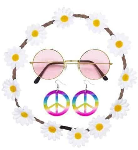 SET ACCESSOIRES HIPPIE (Boucles D’oreilles, Lunettes) Bandeau Cheveux à Fleurs