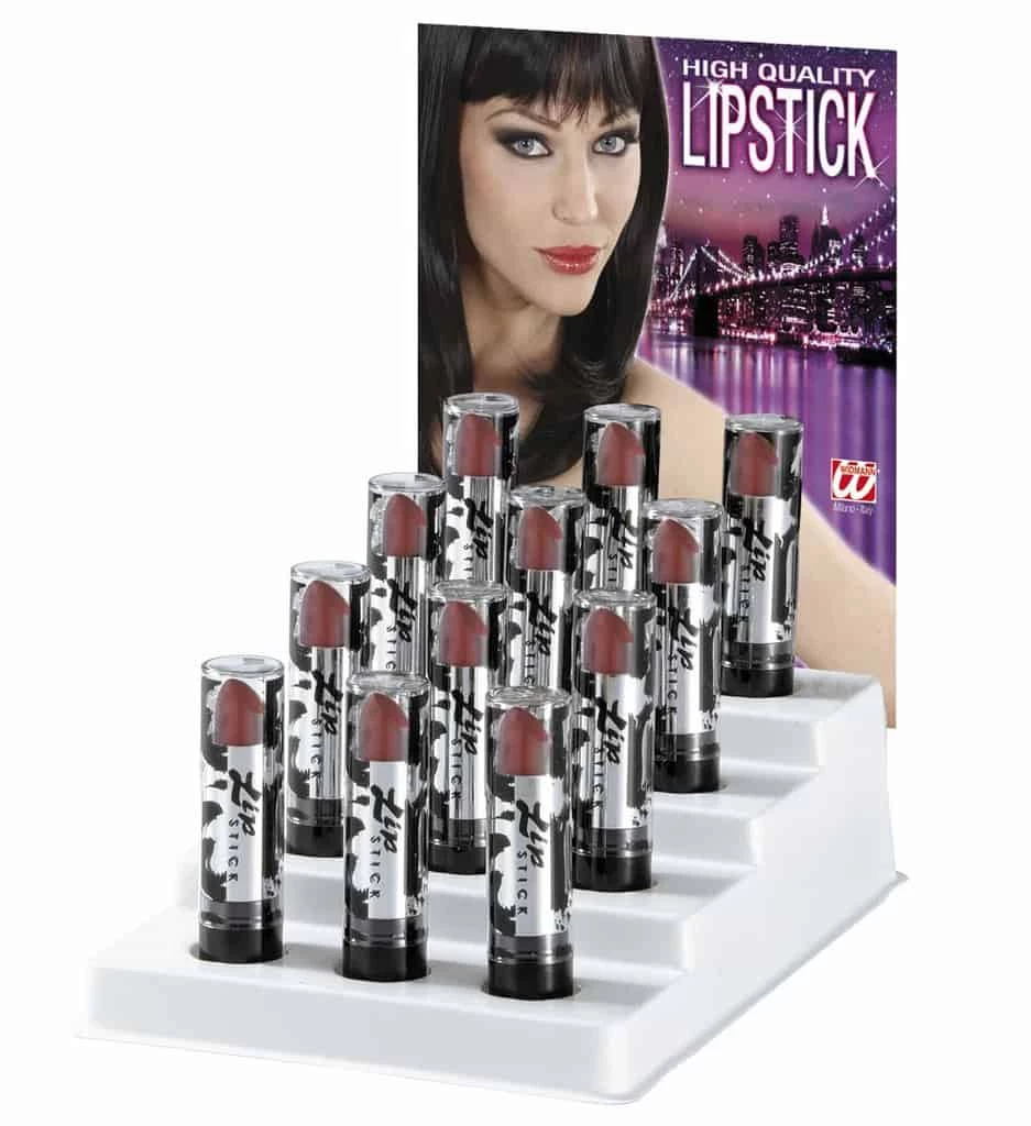 Un Stick de rouge à lèvres rouge de très bonne qualité pour votre maquillage pour la grande soirée d’ Halloween ou dans votre prochaine soirée déguisée sur le thème gothique ou de l’horreur. Ce tube de vernis de marque Widmann est vendu uniquement par lot de 12 minimum, le prix indiqué est le prix unitaire.